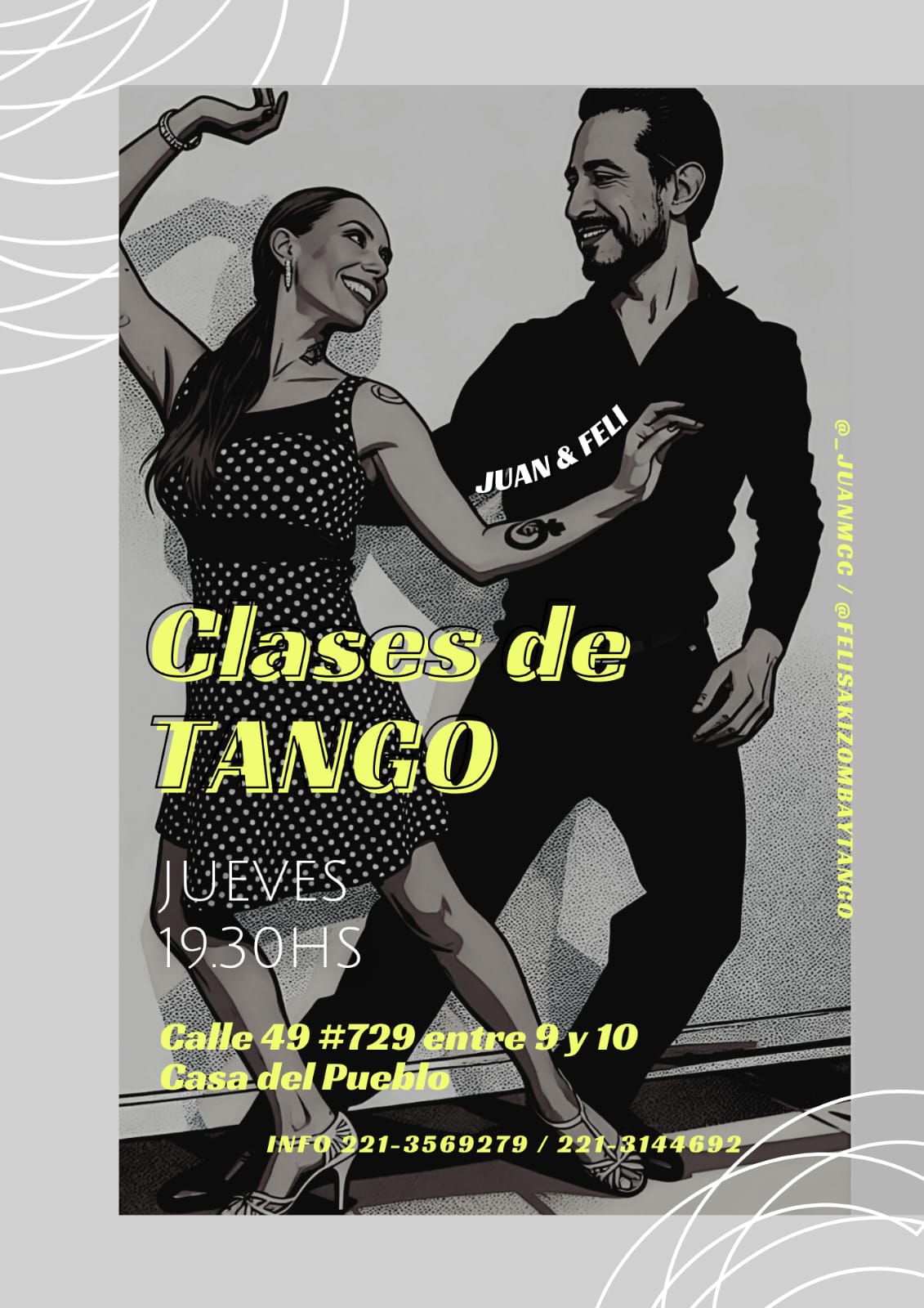 Clases Abiertas de Tango con Gaby Felisa y Juan Manuel Caro Cortes 23 abril @ 19:30 - 21:00 CMT Clases Abiertas de Tango con Gaby Felisa y Juan Manuel Caro Cortes Casa del Pueblo calle 49 729, entre 9 y 10, La Plata, Buenos Aires, Argentina Clases Abiertas de Tango con Gaby Felisa y Juan Manuel Caro Cortes